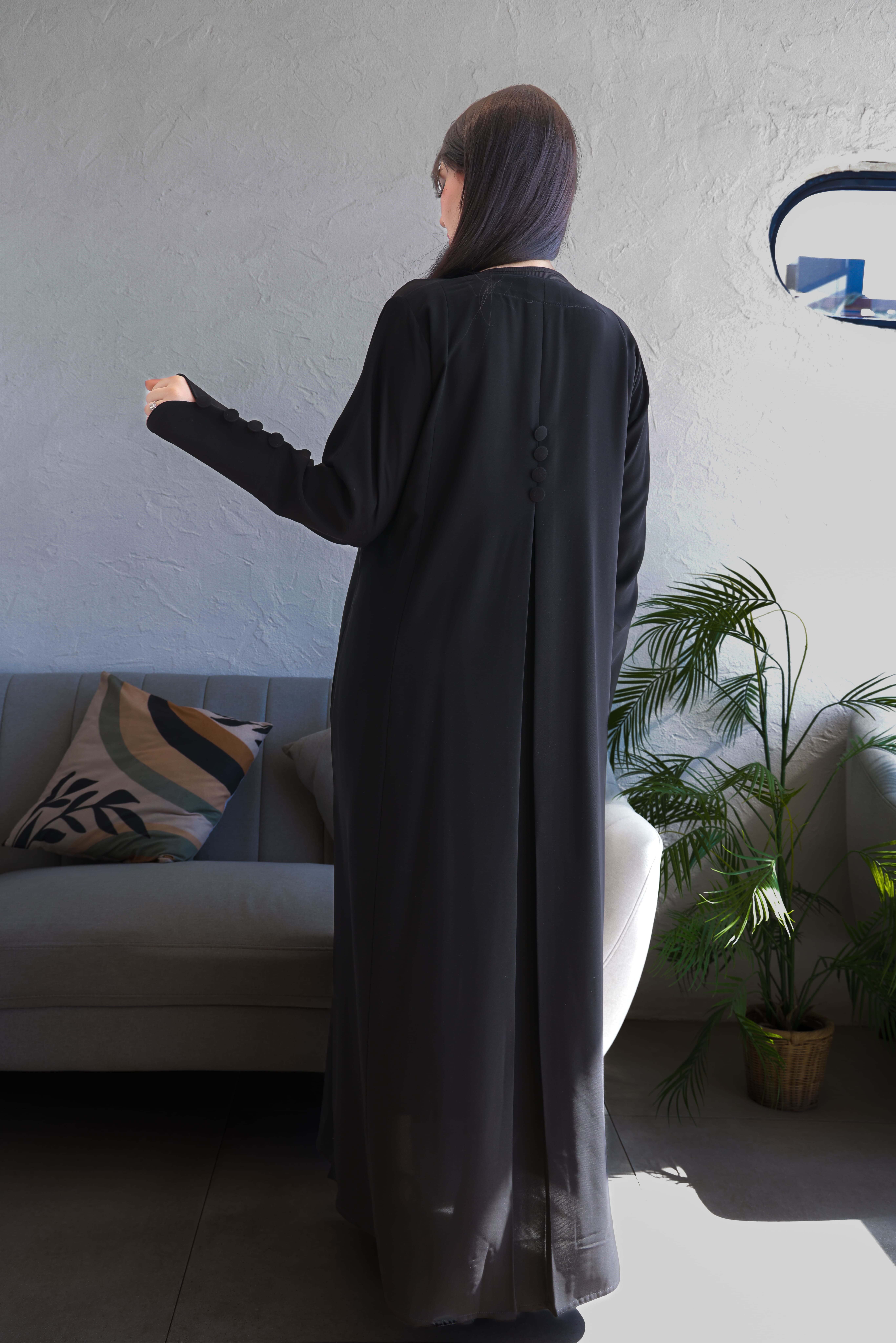 تأتي بكسرات خلفية أنثوية تضيف لمسة جمالية ناعمة، وبقصة ستريت تمنحك الراحة والاحتشام.